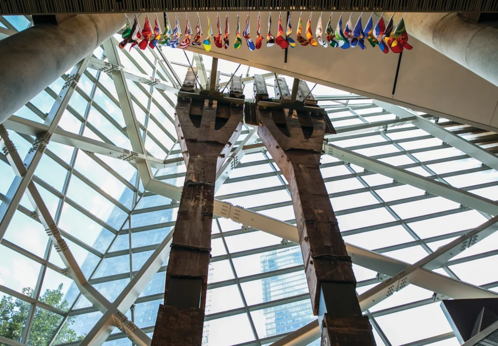 But the museum’s exhibit space is actually below ground, intentionally constructed in and around the footprints of the Twin Towers and incorporating remnants of the original World Trade Center.